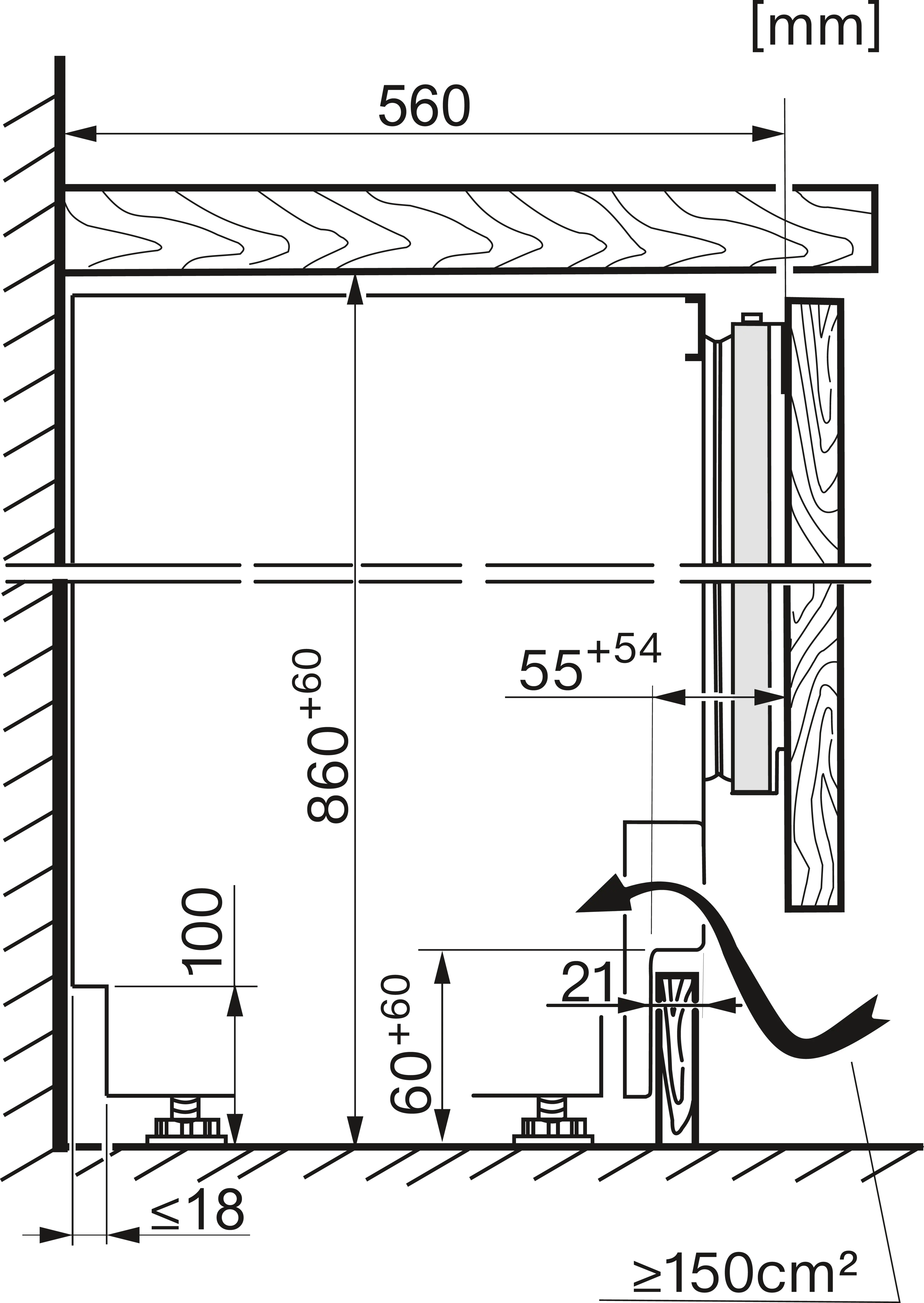 Установка встраиваемого холодильника